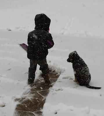Not sure who was more excited to bring him home...Papa or the kids. Unfortunately as timing had it, Papa had to leave 5 days later for work to China and Hong Kong...for 21 days!!!! Mama is only recording this so her brain can remember how fast and yet how slow these 21 days went. During this time frame, 14 of the nights were spent dealing with the flu bug which went through all 4 of you. We had a snow storm, and we (read Mama) was trying to potty train this little pup which meant a fair share of accidents to clean up, garbage tipped over once, and I'm likely forgetting something...but we survived, and Cisco quickly became a part of the family as you can see from below.